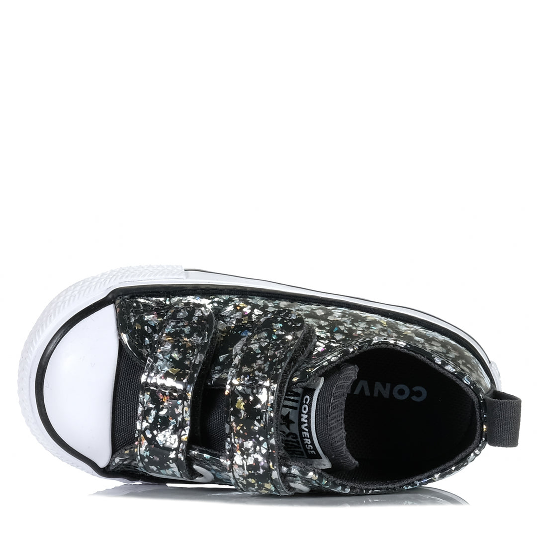 The world’s their dancefloor in these shimmery Chucks. Iconic details deliver on tried-and-true style, while allover glitter gets the party started— any time, any place.