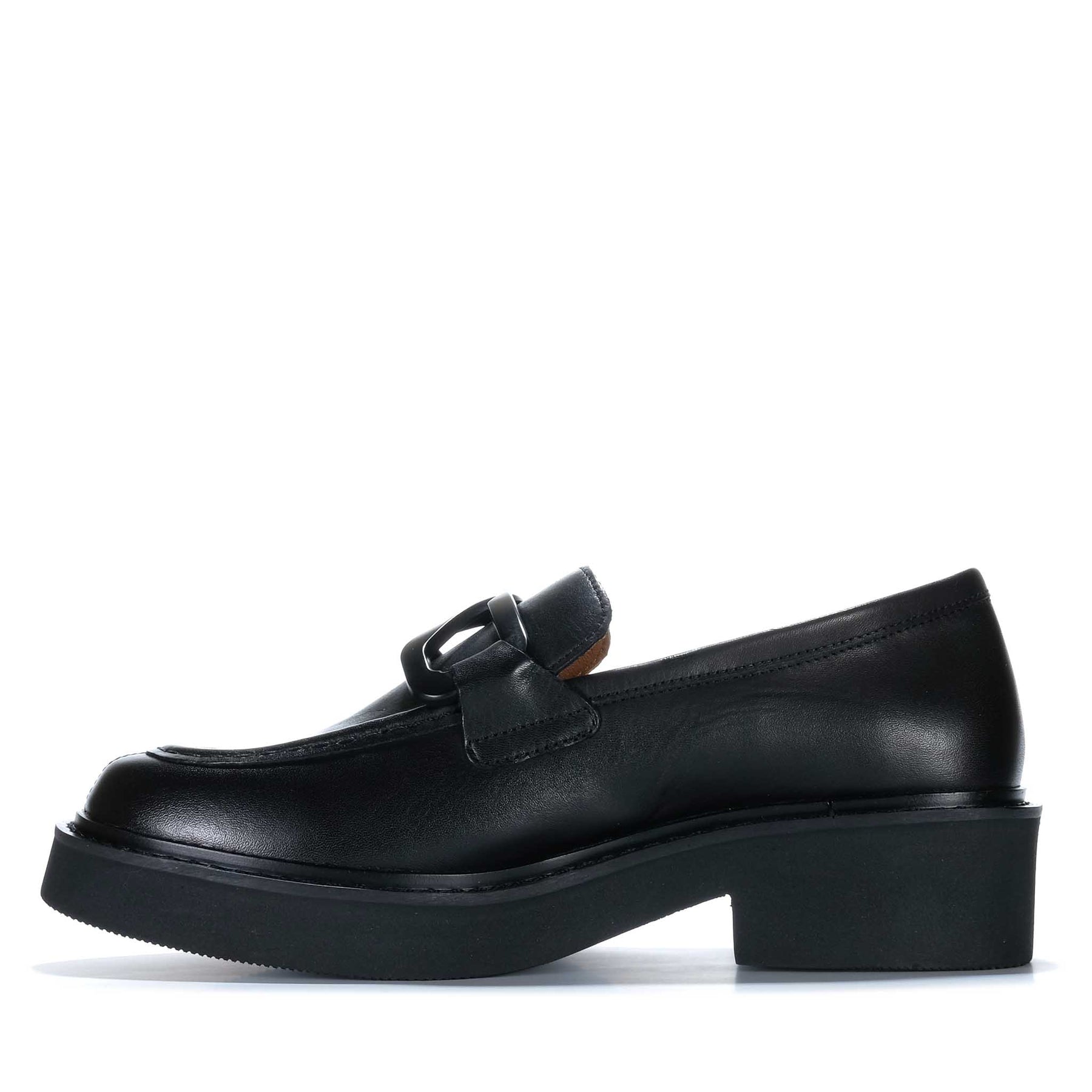 Polished and modern, The EOS Leia leather loafer is set on a bold platform base that adds height with a clean, streamlined look. The leather upper is finished with a statement metal link across the vamp, while a full leather lining provides a more natural feel against the foot. A lightweight manmade outsole keeps the profile easy to wear while offering dependable grip, and the 40mm heel height delivers a confident lift with a stable stance.