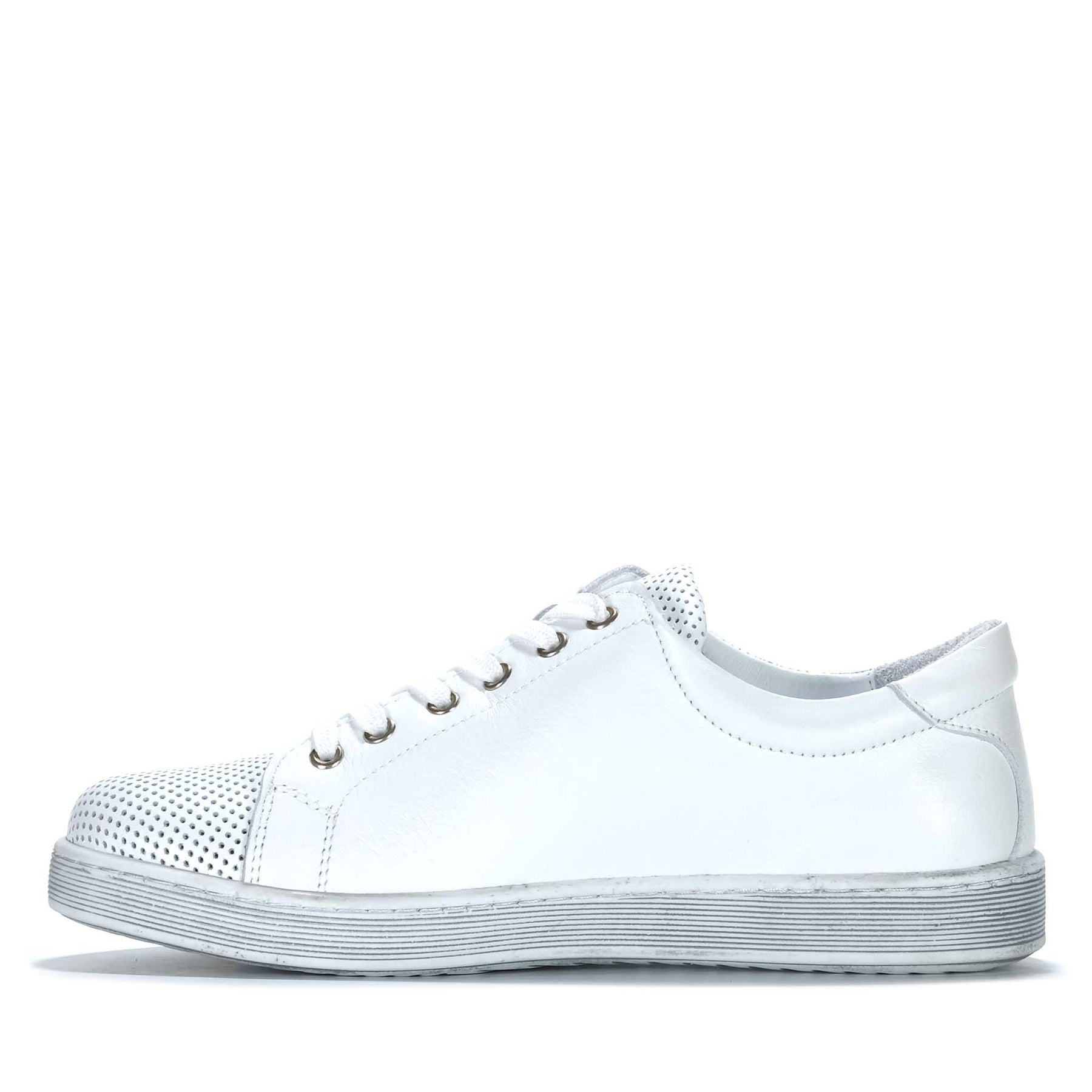 Soft Turkish leather defines this low-top sneaker, featuring refined perforated detailing that is backed by a full leather lining, maintaining structure while allowing subtle breathability without exposing the foot. The leather-lined interior enhances comfort, and the removable insole offers personalised support. A lace-up front ensures an adjustable fit, complemented by a functional side zip for ease of entry. Finished with a durable rubber outsole, the design provides dependable traction and a clean, modern profile suited to everyday wear.
