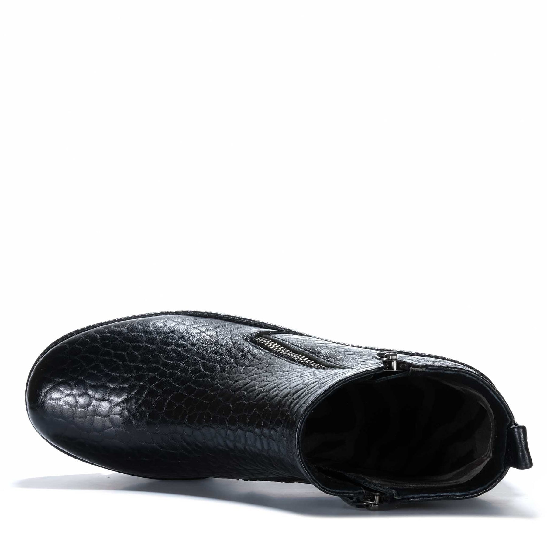 The Bresley Puzzle is a statement ankle boot that combines bold texture with a sleek, elevated silhouette, crafted with a premium leather upper and leather lining for a refined feel. Twin zips add both convenience and a modern edge, while the sculpted wedge-style profile and chunky rubber outsole create a confident, fashion-forward look with everyday practicality. Designed in NZ and finished with a 65mm heel height, this standout style brings striking detail and contemporary polish to any outfit.